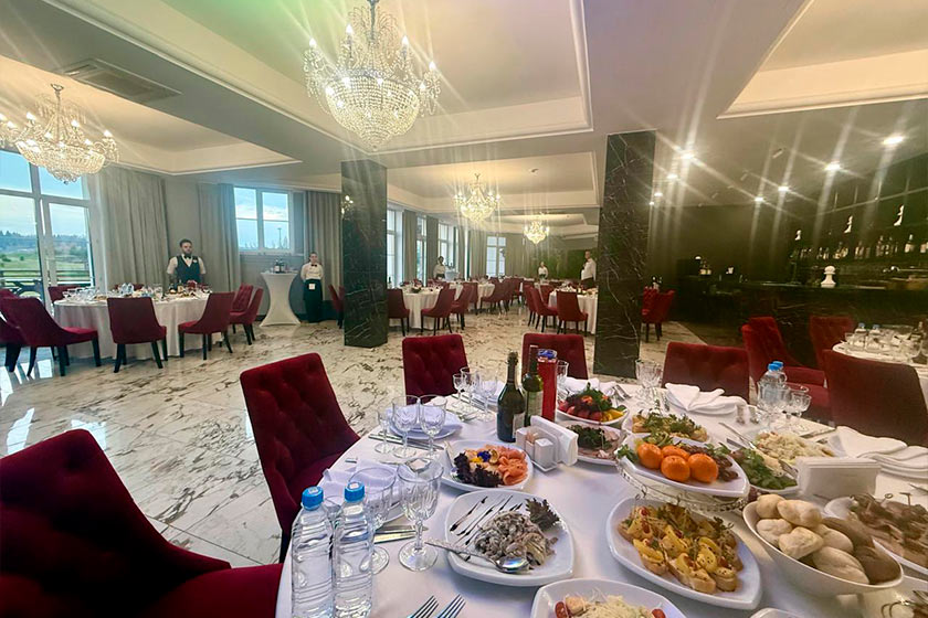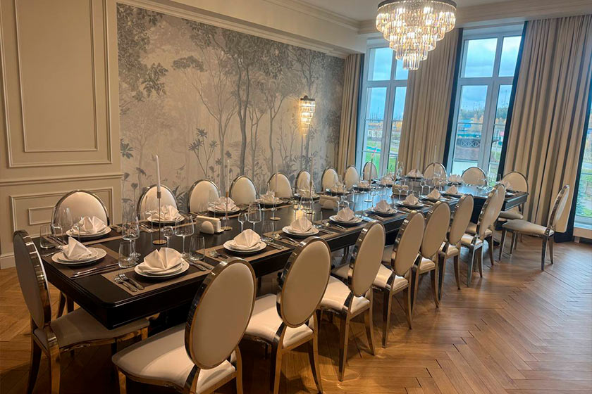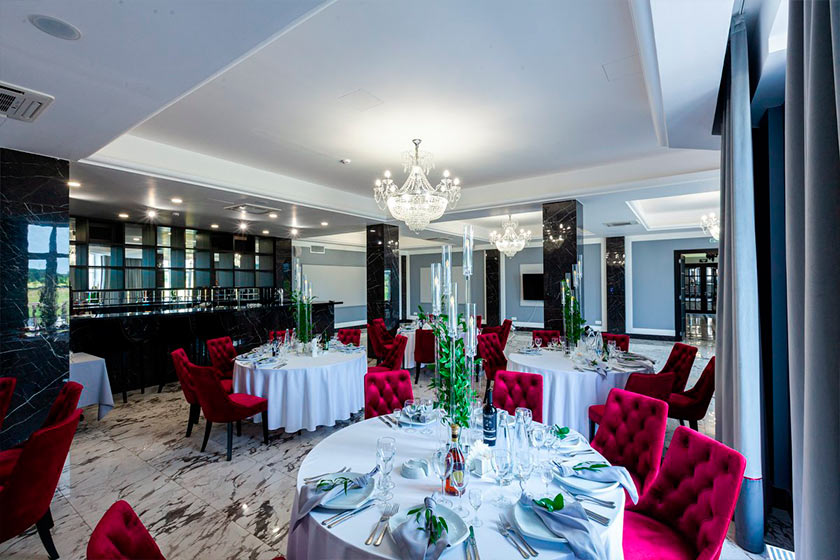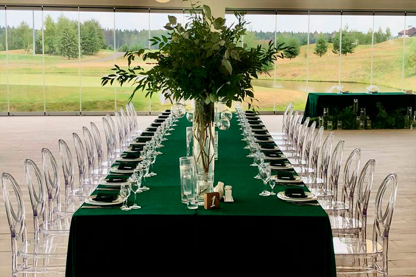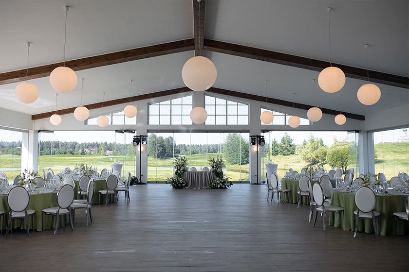 Зал «Панорамная Веранда» вместимость: до 180 человек. Идеально для масштабных банкетов, выпускных и корпоративных мероприятий с завораживающим видом на гольф-поле