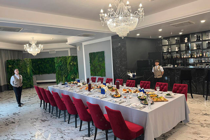 Зал «Айрон» вместимость: до 80 человек. Универсальный зал для банкетов, фуршетов и бизнес-встреч.