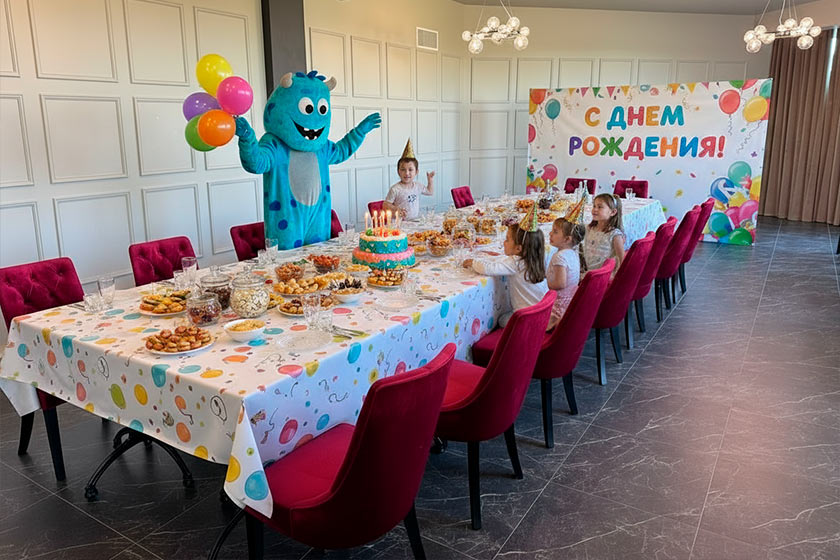 Зал «Берди» вместимость: до 30 человек. Уютный светлый зал, идеален для небольших деловых встреч, камерных праздников, детских праздников.