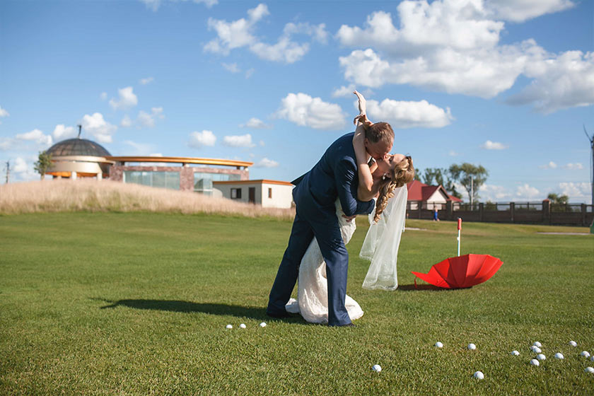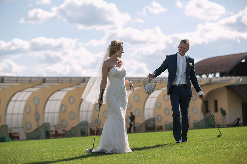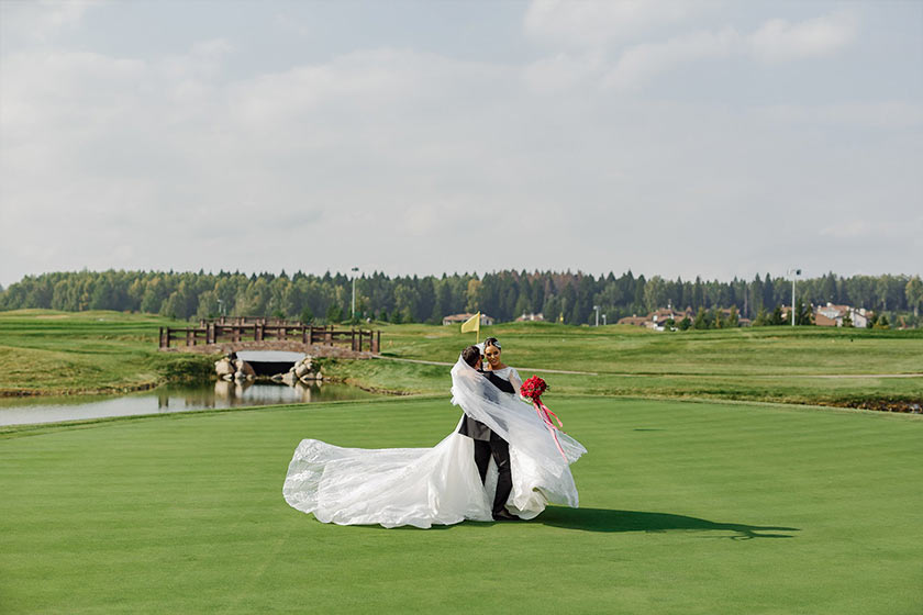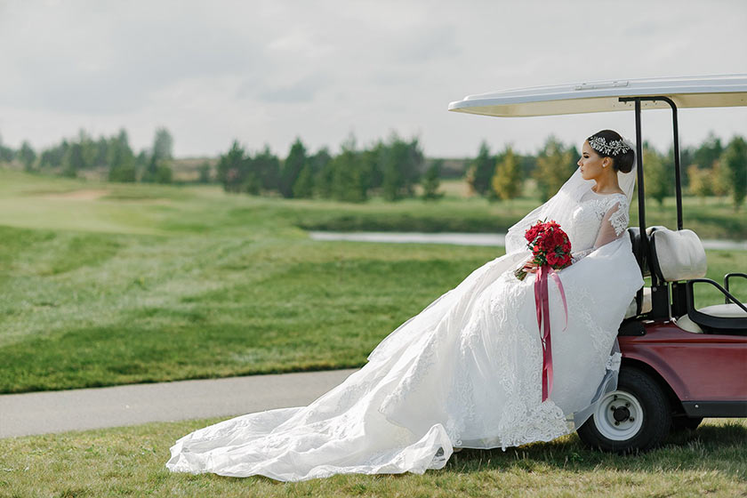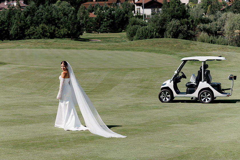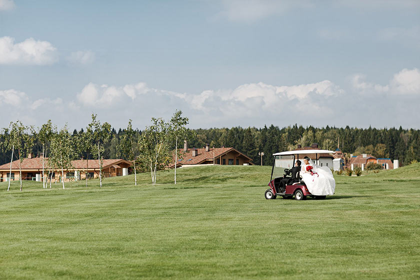 Незабываемые фотосессии на гольф-поле: в стоимость включена аренда гольф-кара с водителем и гольф-инвентарем для создания уникальных свадебных снимков