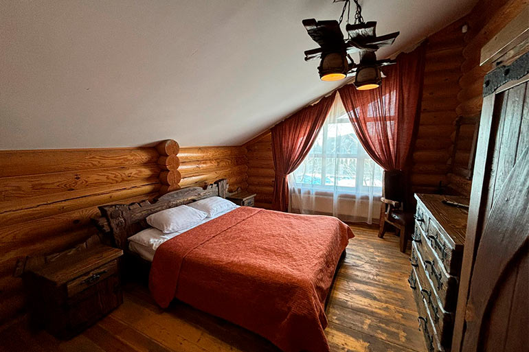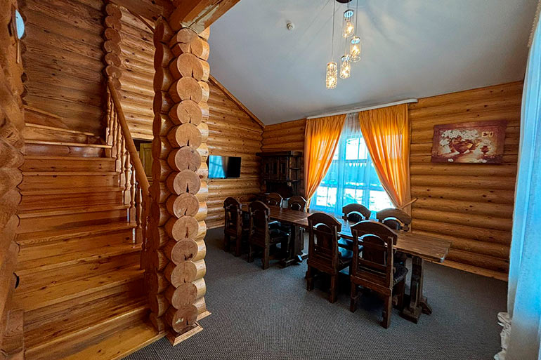 Уютный деревянный коттедж «Шале» расположен в уединенном месте – идеальное пространство для семейного отдыха, празднования Дня рождения или другого торжества с большим количеством человек. На первом этаже вас ждет просторная гостиная и обеденная зона с большим столом на 14 человек и полностью оборудованная кухня – здесь так приятно собираться за ужином после активного дня или большой компанией отметить торжество. Каждая спальня имеет собственный санузел с душевой кабиной, обеспечивая гостям максимум приватности и комфорта.