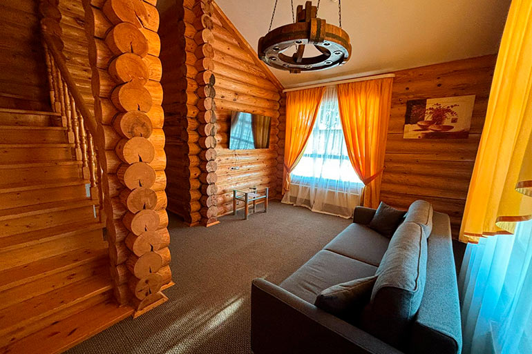 Финская сауна станет приятным завершением дня. После парной можно расслабиться в уютной гостиной с панорамными окнами, любуясь природными пейзажами. В гостиной установлен двуспальный диван. Предусмотрена парковка для 4 автомашин. Обособленное расположение дома делает его особенно привлекательным для тех, кто ценит комфорт и активность, но в то же время уединение и приватность отдыха.