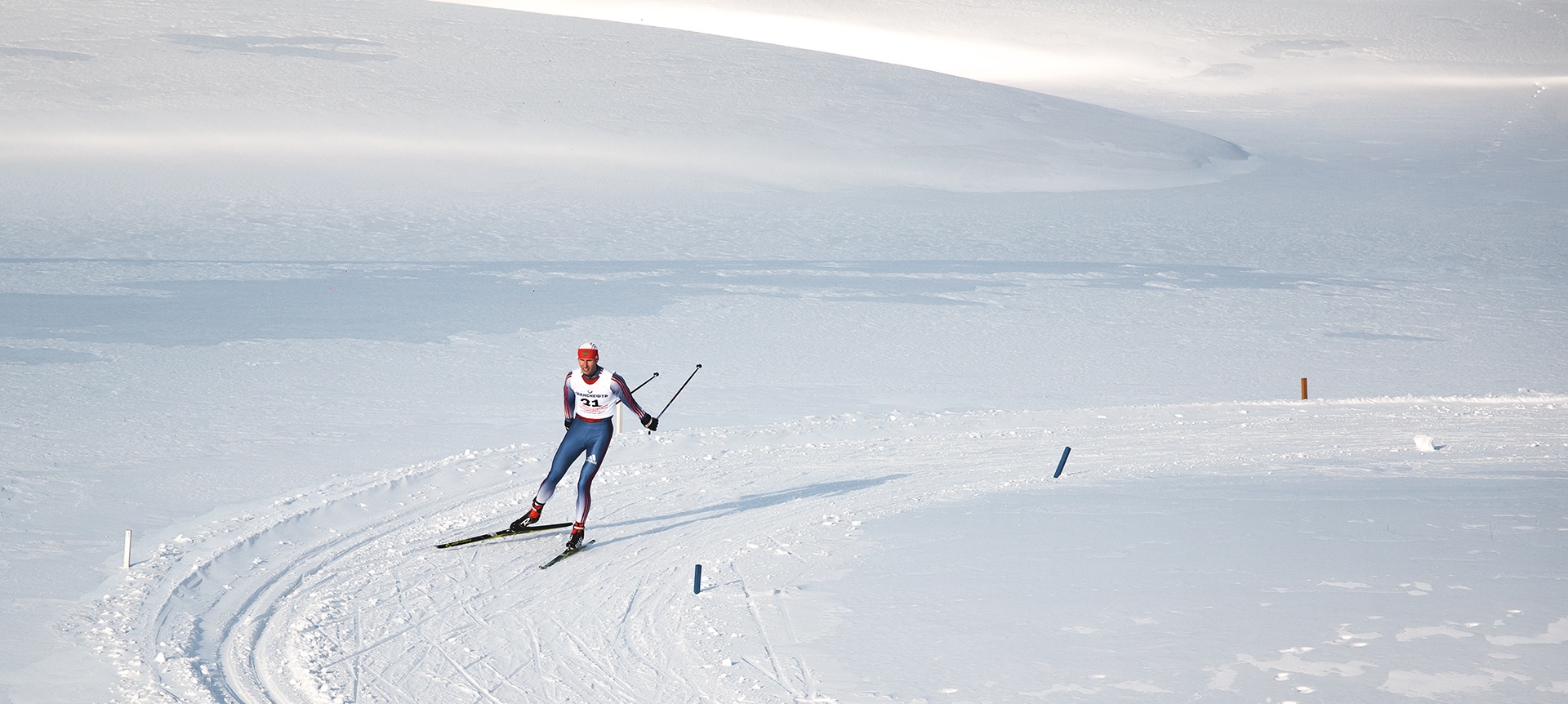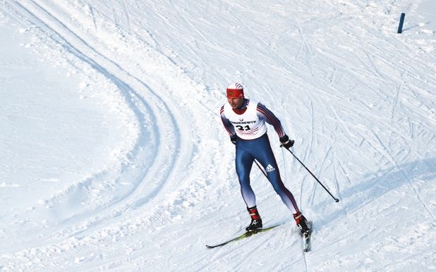 трасса для беговых лыж. На профессионально подготовленной трассе с различными перепадами